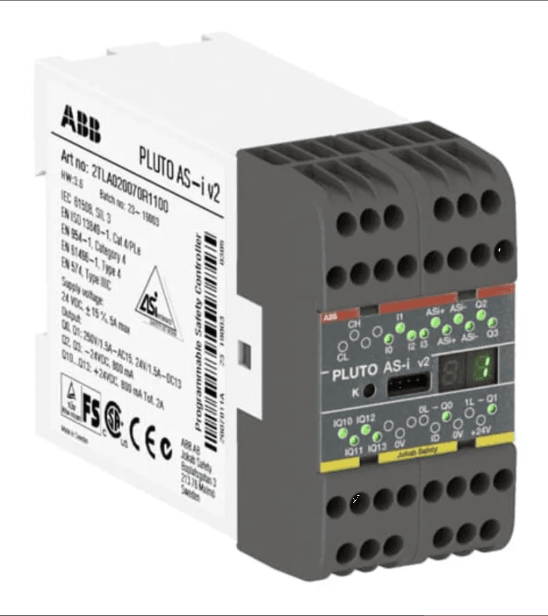 SpecificationsBrandABBRangeAS-i v2SeriesPlutoNumber of I/O12Number of Safety Inputs8Number of Safety Outputs4Supply Voltage24 V dcCountry of OriginSENumber of Safety Outputs4Supply Voltage24 V dcCountry of OriginSE