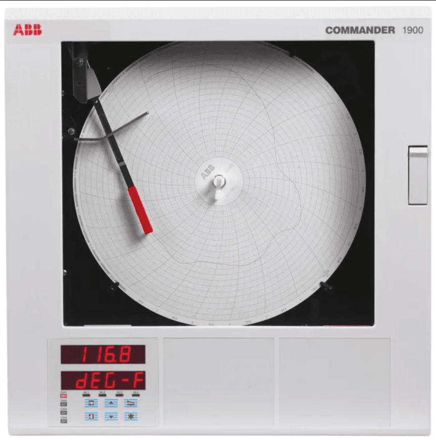 SpecificationsBrandABBChart TypeCircularNumber of Inputs1Parameter MeasuredCurrent, Millivolt, Resistance, Temperature, VoltageMaximum Temperature Measurement+1300 °C, +1700 °C, +1800 °C, +300 °C, +600 °C, +900 °CMaximum Current Measurement50mANumber of Outputs1Maximum Resistance Measurement750 ï¿« 10000ΩMaximum Operating Voltage240V acRecorder Input TypemA, mV, Thermocouple, VMaximum Voltage Measurement+5VModel Number pC1911IP RatingIP66Best Temperature Measurement Accuracy±0.5 °C, ±1 °C, ±2 °CTemperature Measurement Resolution0.1¾st Current Measurement Accuracy±0.2 %Current Measurement Resolution0.1 %Weight8.2kgMinimum Operating Voltage100V acBest Voltage Measurement Accuracy±0.1 ¾st Resistance Measurement Accuracy±0.2 %, ±0.5 %Voltage Measurement Resolution0.1%Power SourceMainsWidth134mmLength382mmResistance Measurement Resolution0.1%Height386mmCountry of OriginGBMaximum Current Measurement50mANumber of Outputs1Maximum Resistance Measurement750 ï¿« 10000ΩMaximum Operating Voltage240V acRecorder Input TypemA, mV, Thermocouple, VMaximum Voltage Measurement+5VModel Number pC1911IP RatingIP66Best Temperature Measurement Accuracy±0.5 °C, ±1 °C, ±2 °CTemperature Measurement Resolution0.1¾st Current Measurement Accuracy±0.2 %Current Measurement Resolution0.1 %Weight8.2kgMinimum Operating Voltage100V acBest Voltage Measurement Accuracy±0.1 ¾st Resistance Measurement Accuracy±0.2 %, ±0.5 %Voltage Measurement Resolution0.1%Power SourceMainsWidth134mmLength382mmResistance Measurement Resolution0.1%Height386mmCountry of OriginGB